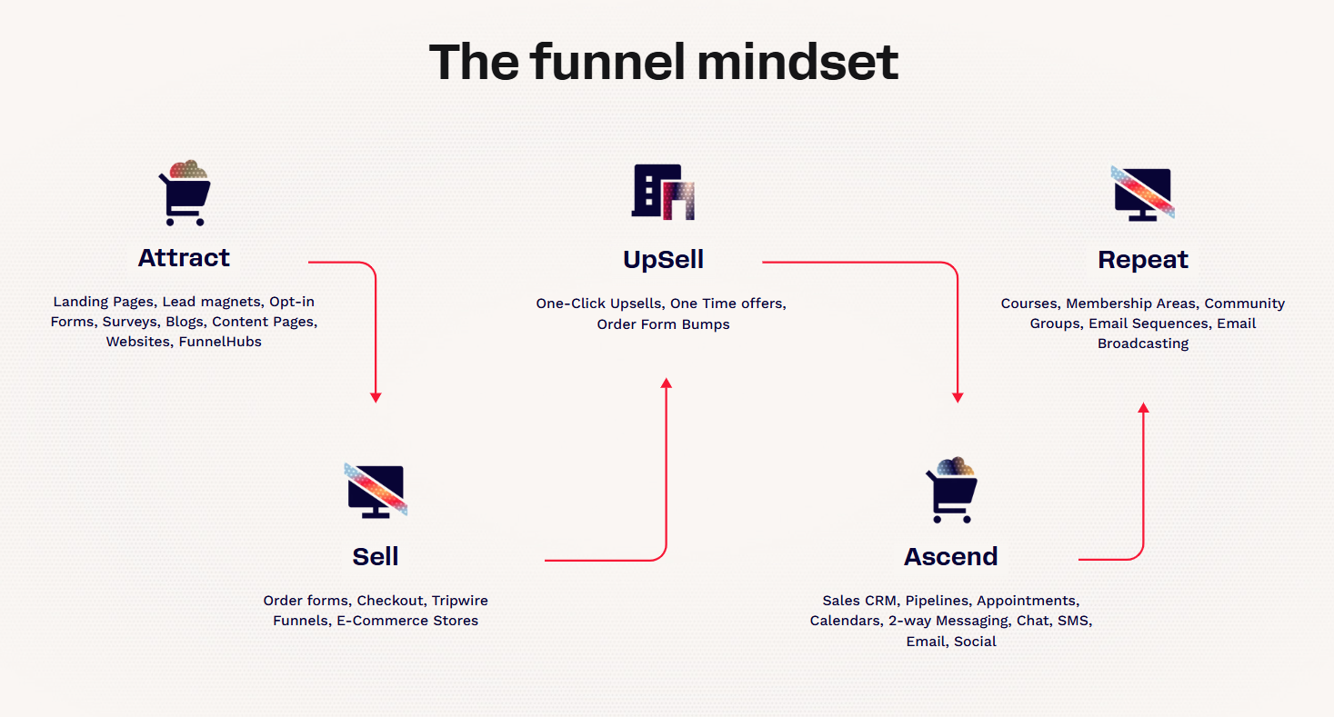 Courses, Membership Areas, Community Groups, Email Sequences, Email Broadcasting